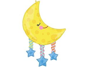 Сложный, объемный фольгированный шар в форме месяца со звездами. При надувании рекомендуется использовать гелий. Имеет встроенный клапан - что упрощает надувание. Тонкая миларовая (фольга на полиэтиленовой основе) пленка позволяет шарам не сдуваться от недели до одного месяца.