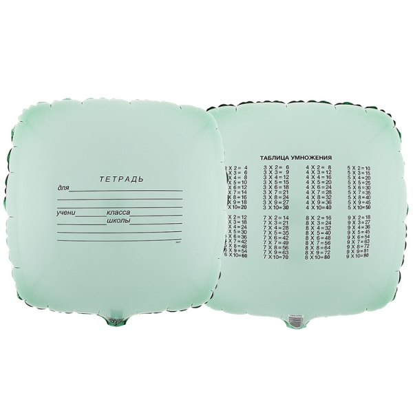 Шар (18''/46 см) Квадрат, Тетрадь, Зеленый, 1 шт. в уп.