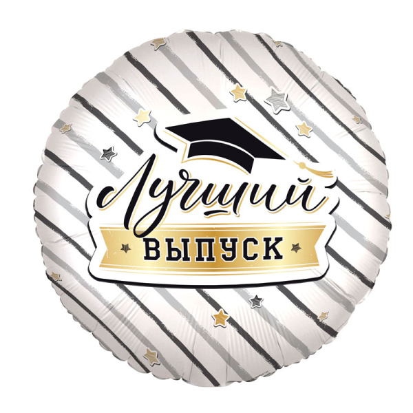 Фольгированный воздушный шар "Лучший выпуск" - идеальное дополнение к декору в оформлении выпускного вечера или поздравления выпускника. Сочетайте с латексными и фольгированными оформительскими шариками.