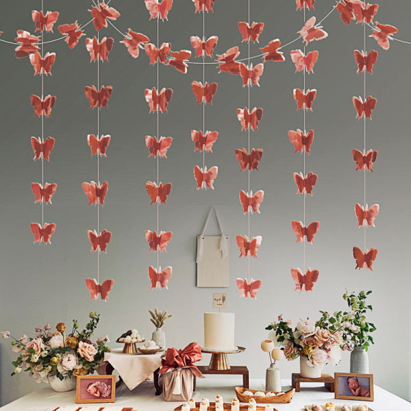 Гирлянда-подвеска, Бабочки, Розовое Золото, 200 см, 1 уп.