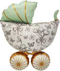 Шар (36"/91 см) Фигура, Винтажная коляска, Мятный, Сатин, 1 шт. в уп.