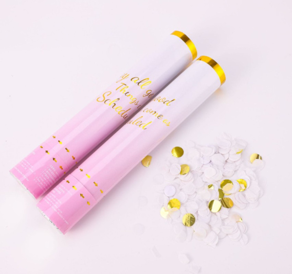 Пневмохлопушка, Конфетти белый/золото, 30 см, 1 шт.
