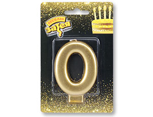Декоративное украшение стола. Золотая Свеча в форме цифры "0". Отличное решение для декорирования торта, десерта ко дню рождения или юбилею. Стеарин, оригинальный дизайн. Высота свечи-цифры 8см.